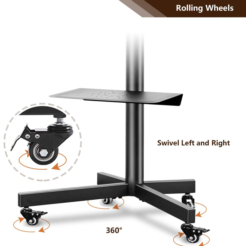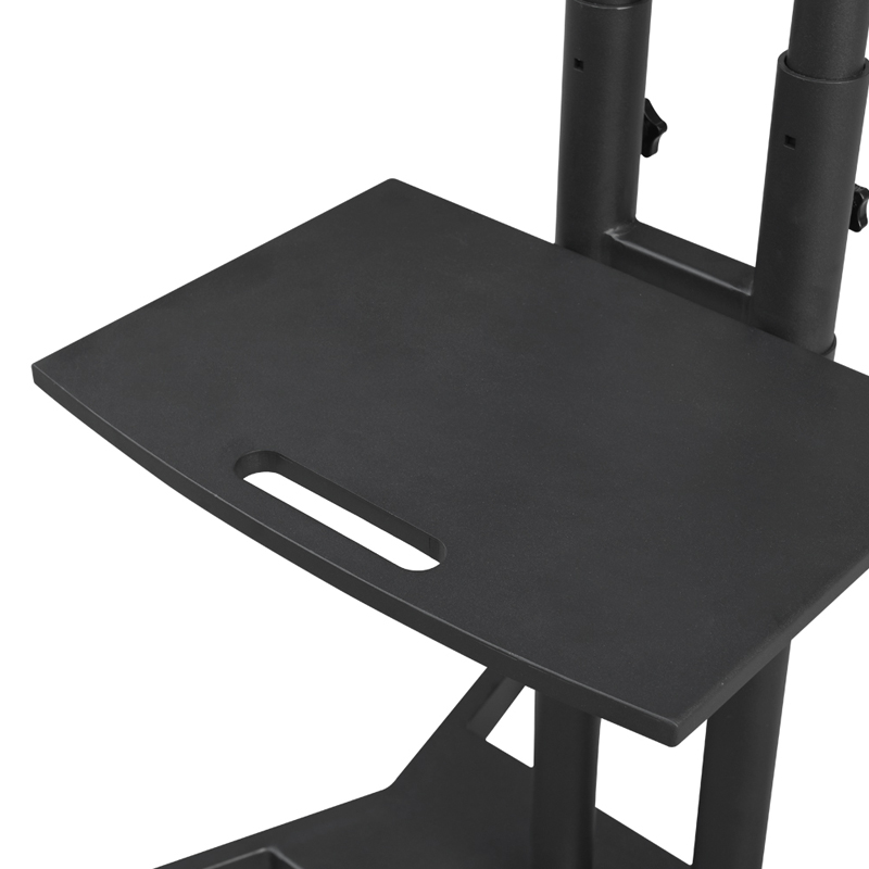 تم تزويد هذا الحامل بقاعدة أرضية مجهزة بعجلات تساعد على تسهيل تحريك الشاشة إلى أي مكان. حيث يمكنه حمل تلفزيون بشاشة LED / LCD بحجم من 32 بوصة إلى 65 بوصة، كما أنه مزود برف قوي لحمل الكمبيوتر المحمول (اللابتوب) أو الأجهزة الرقمية الأخرى.